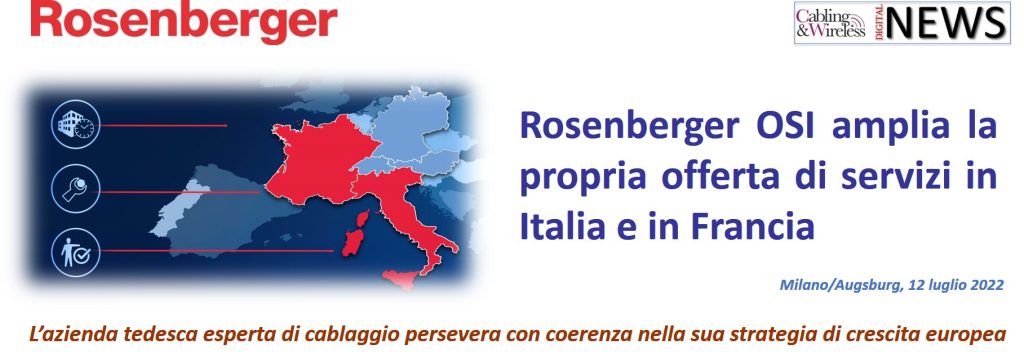 Rosenberger Optical Solutions & Infrastructure (Rosenberger OSI), esperto di connessioni in fibra ottica, soluzioni di cablaggio e servizi infrastrutturali, annuncia che la sua offerta completa di servizi sarà ora estesa a Italia e Francia. Questa misura fa parte della strategia di crescita paneuropea e serve per poter offrire anche ai clienti di altri Paesi tutti i servizi per i loro componenti infrastrutturali nel data center e nel cablaggio degli edifici da un’unica fonte, sotto forma di “partner one-stop shop“.